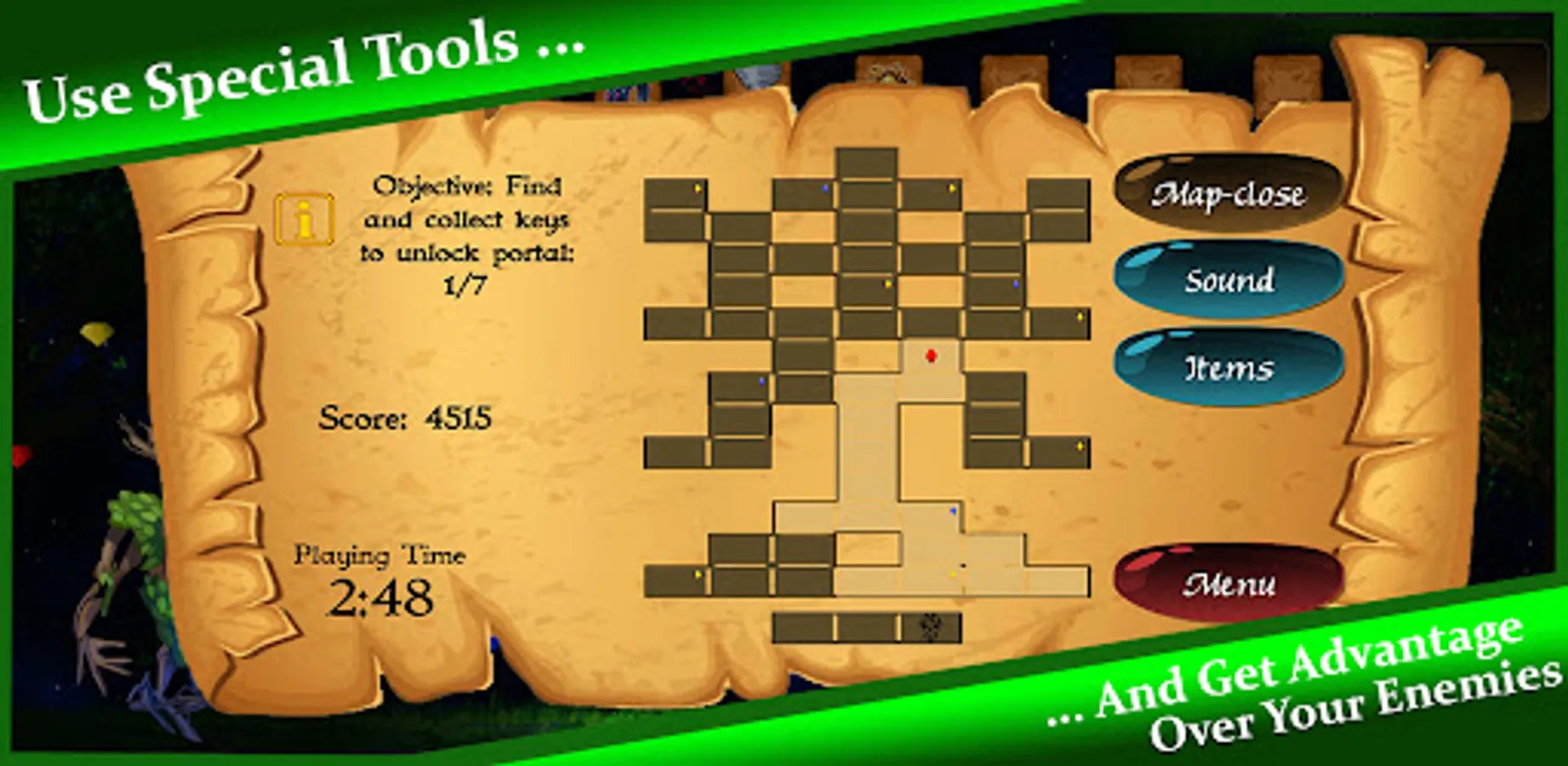 π You are a brave dwarf π§ββοΈ who wanders a world full of dark powers and monsters that are trying to stop you. You collect coins and diamonds for which we can buy scrolls or magic items from the merchants we meet. The main goal is to find the keys that will allow us to open the gate and fight the king of the lands. π² π³ π΄π² π³ π΄π² π³ π΄π