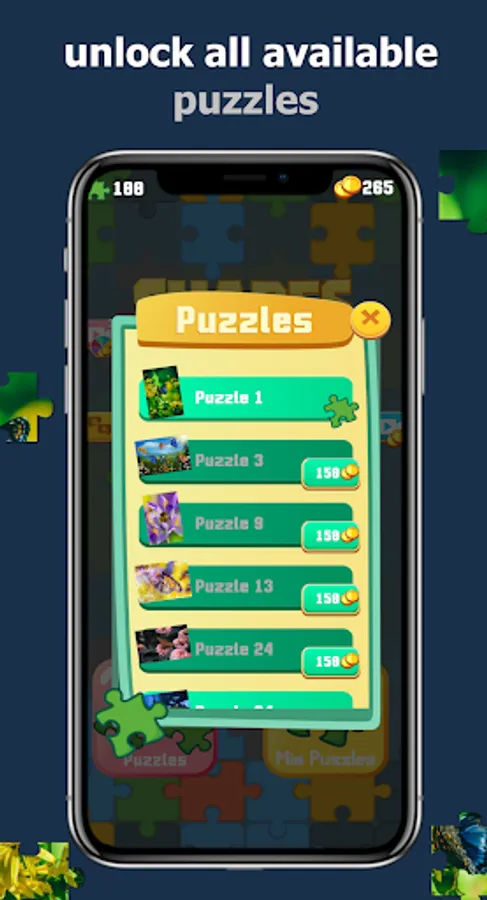 Shapes Puzzles is an entertaining puzzle game, within the game you will be able to solve unlockable puzzles as well as import your own images to generate totally new and personalized puzzles.