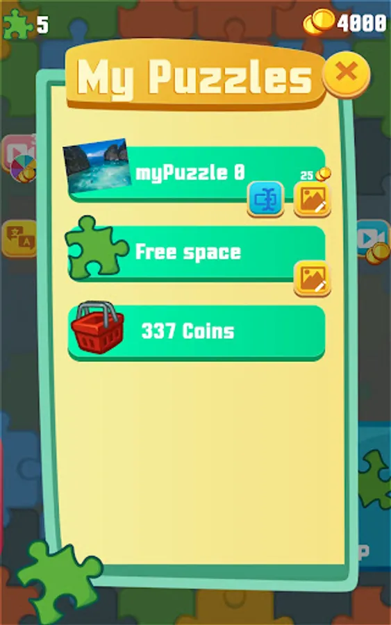 - Possibility to create your personalized puzzles with your own images.