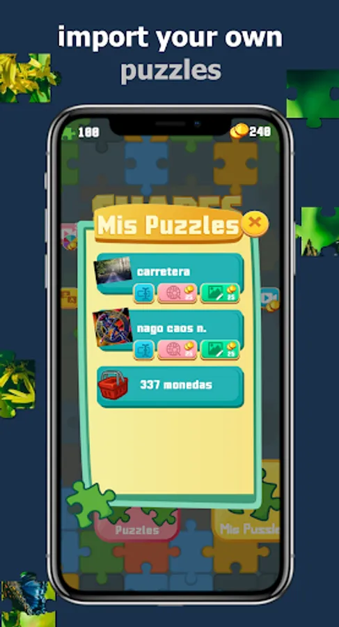 Shapes Puzzles has an algorithm capable of creating any type of puzzle just by selecting an image from your device, it is generated automatically and you can play as if it were your own from the game.
