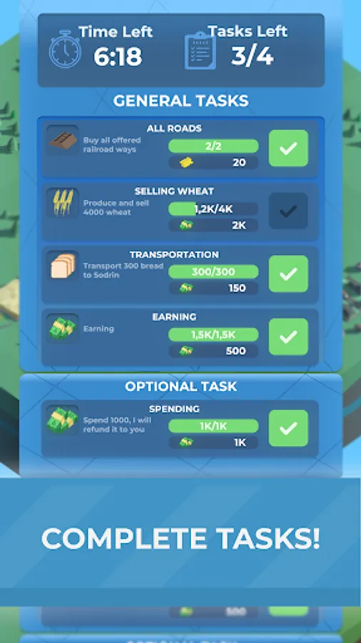 ☑ But do not forget that the time to unite the continent with the help of the railway is limited, and you should hurry! Don't forget to repair your own trains trem and watch the prices, because you may not have time to complete all the tasks in order to unite the entire continent.