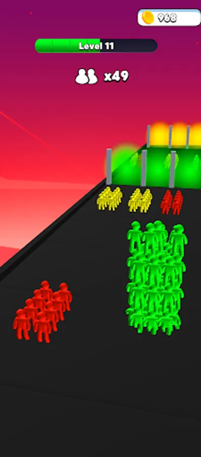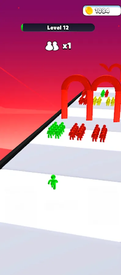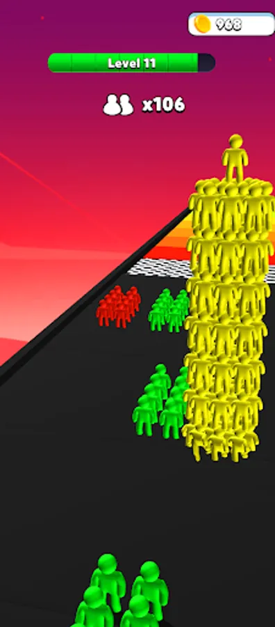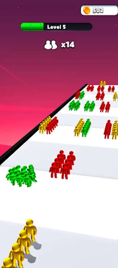Collect the humans with the same color as you to stack them, and avoid those who are not like your color.