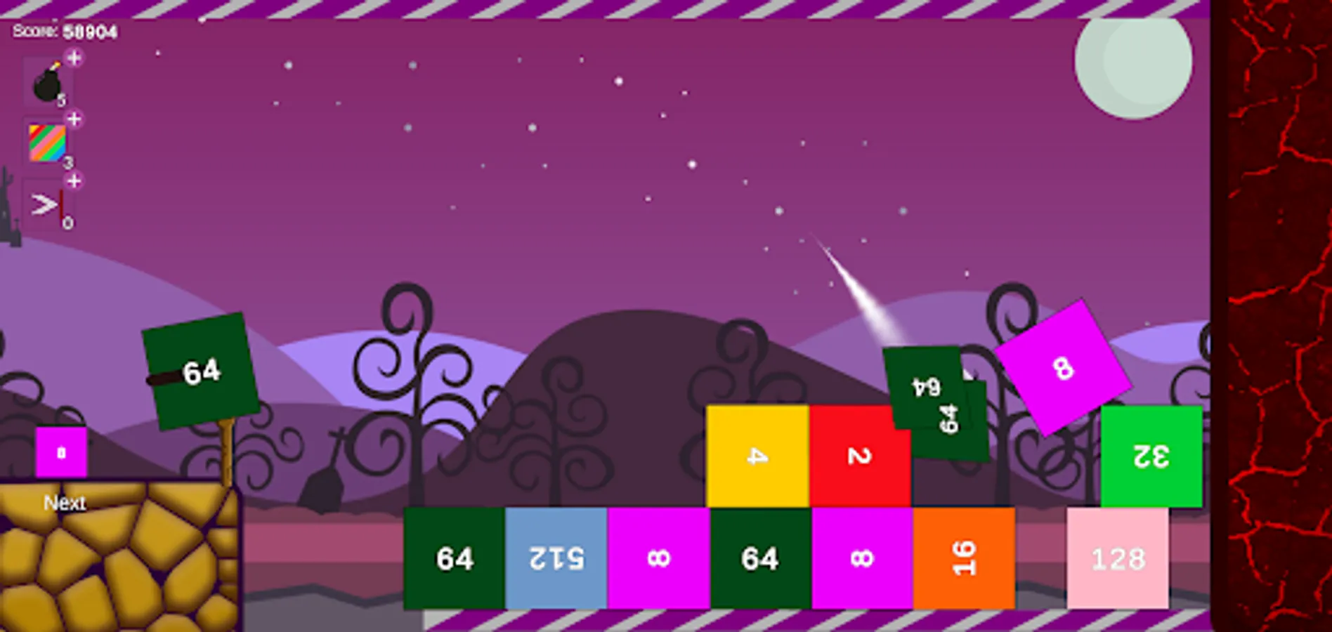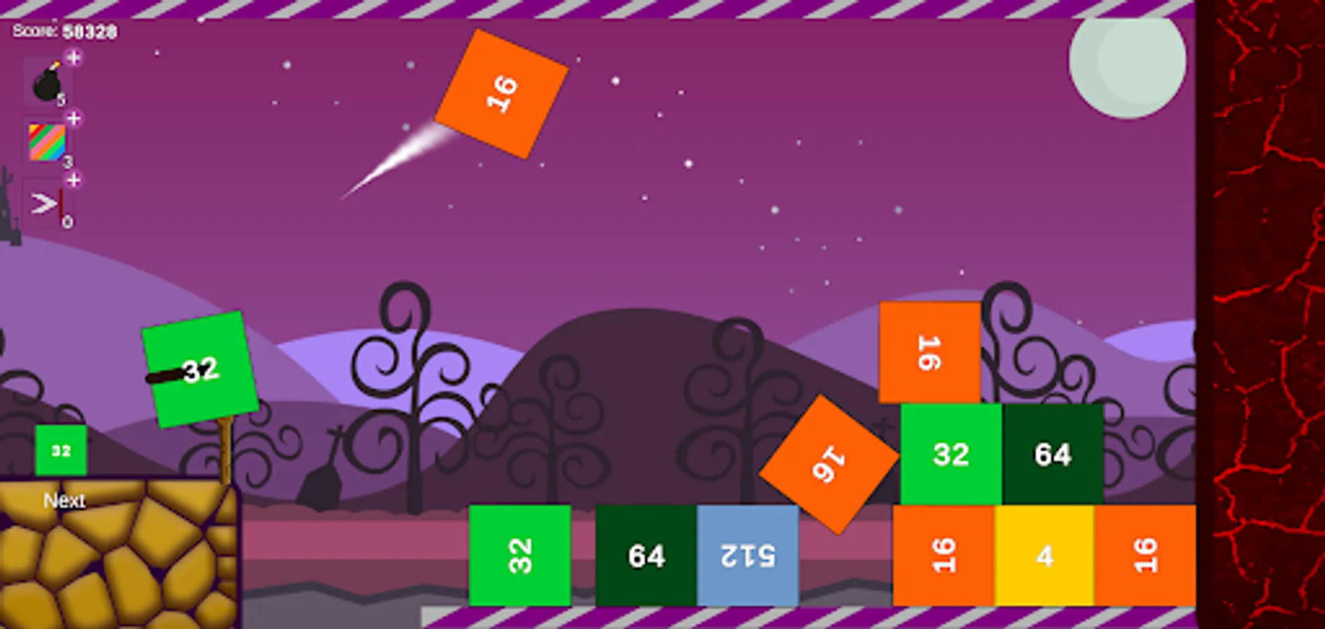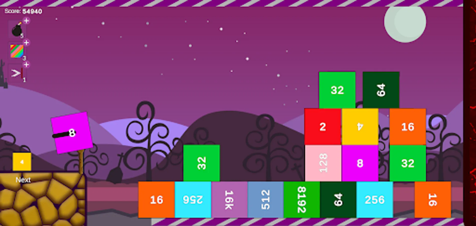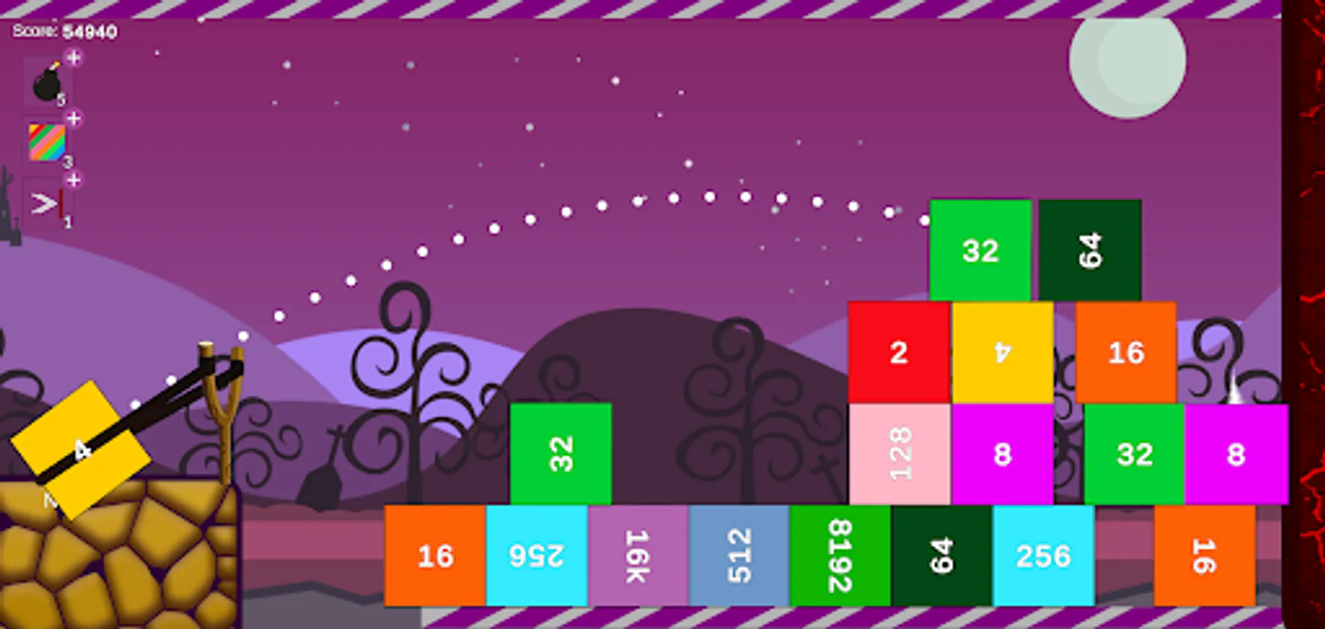 Throw and merge is a new 2048 game style fit best for time killing. Your aim is to create the biggest block ever seen. Controls are very simple, just pull the block on the slingshot and release it when you are sure it will hit a same numbered block. If you miss and do not merge the wall on the other side will push you a bit. If you miss too many times and wall pushes you to the end you will lose the game. But dont worry, because you can also use your abilities.