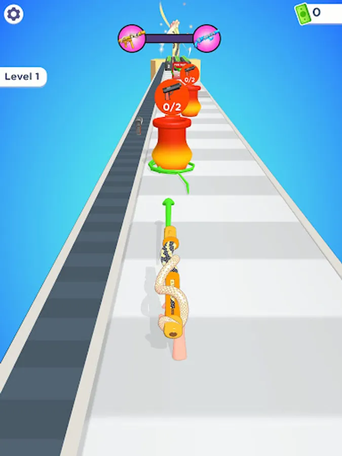 Your snakes will tightly surround the target and give you weapons and buffs that you can use in the level!