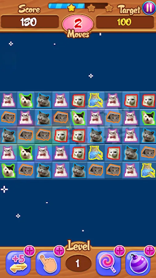 How do you play? Match the cats by their picture or the color around them and then switch their places vertically or horizontally until you get 3, 4, or 5 in a row. 4 or 5 in a row gets you power moves which you match to the color around the cat.