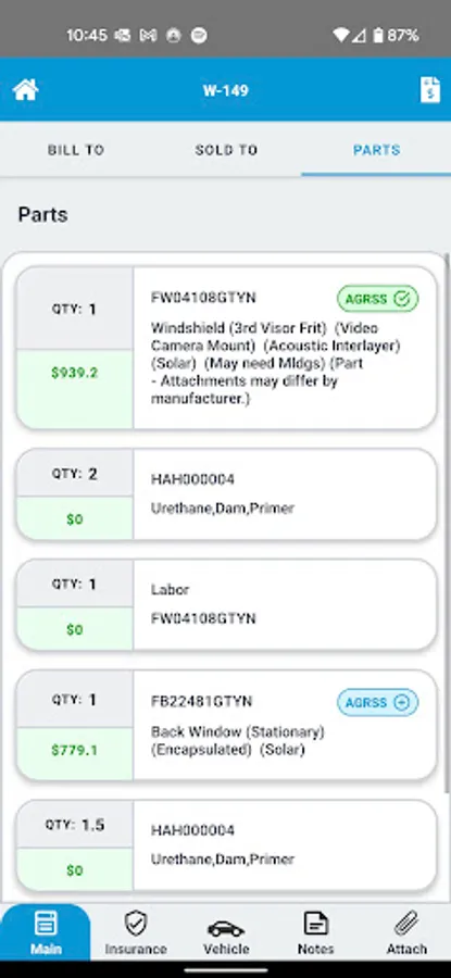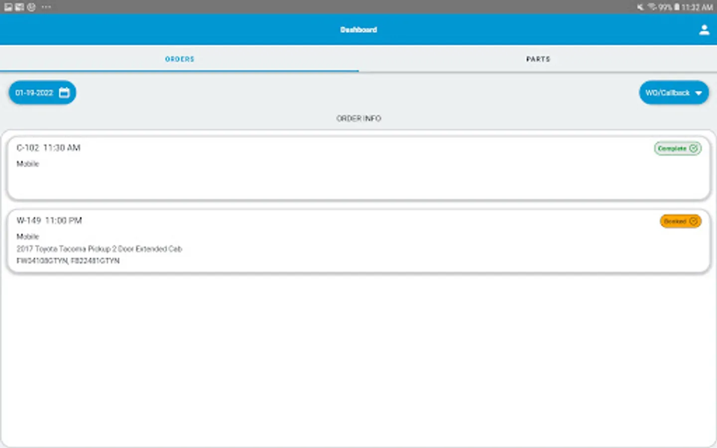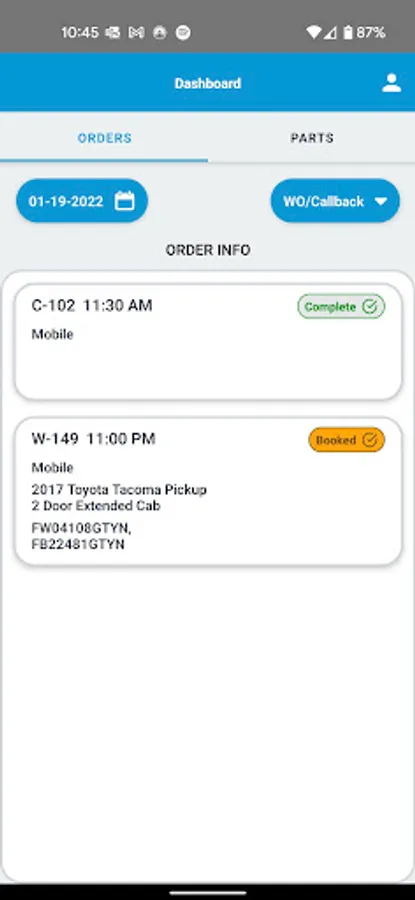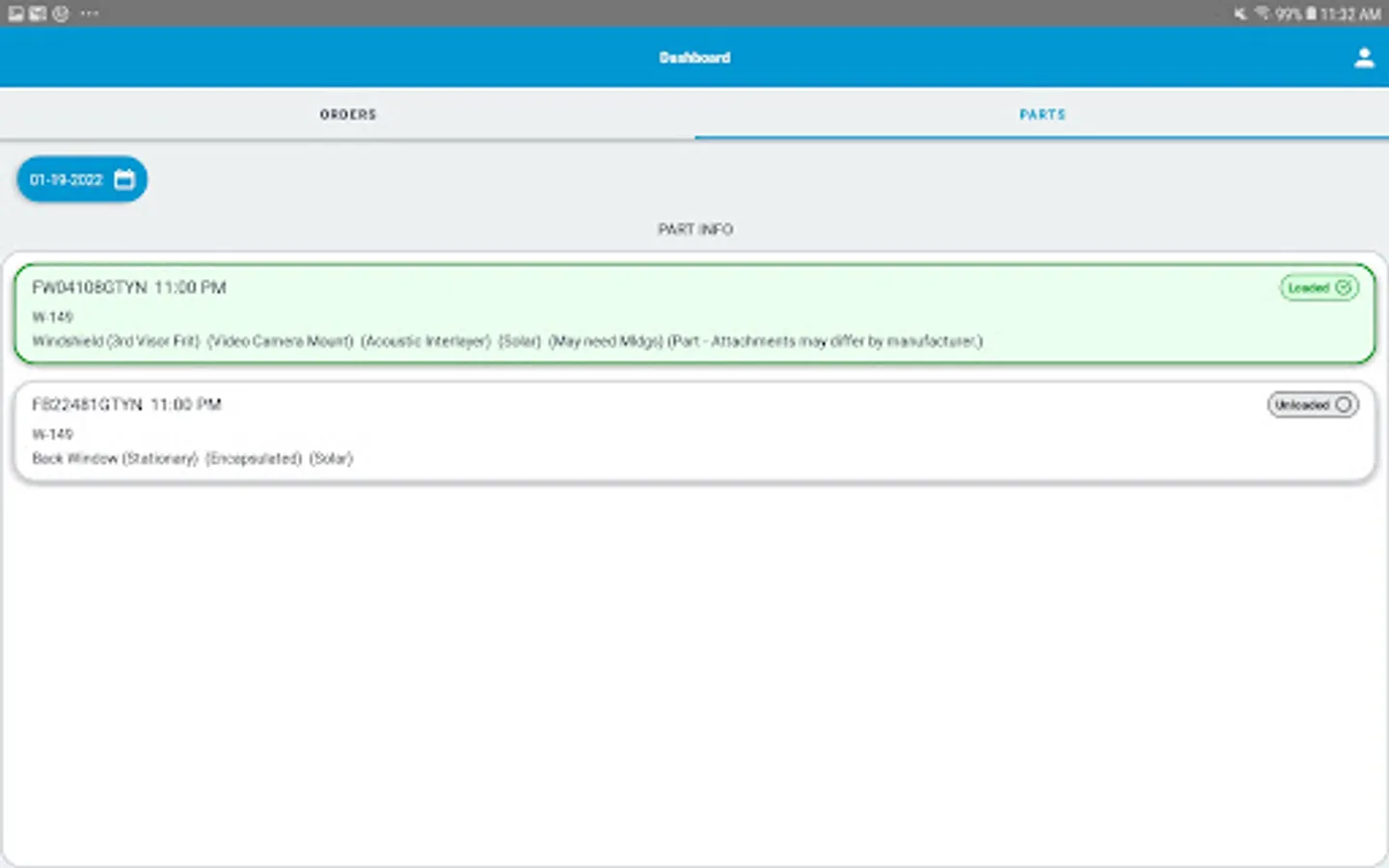 - View parts required for all jobs on the selected day in a list format to load the vehicle
