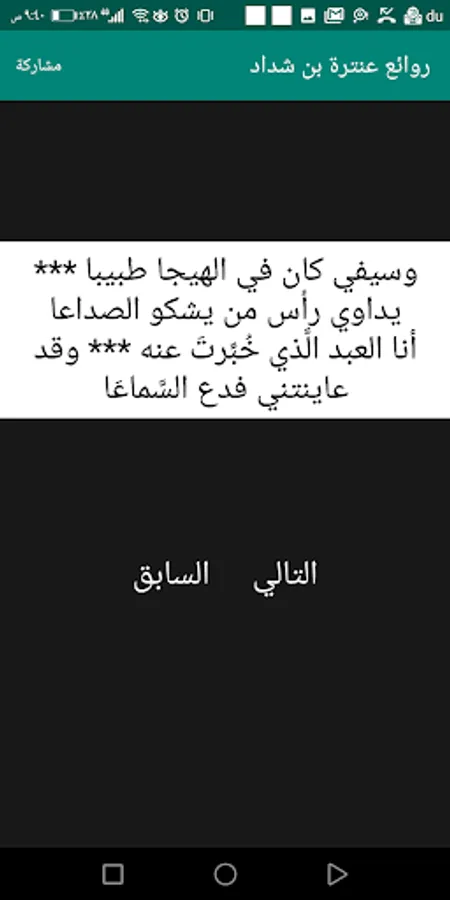 هو عنترة بن شداد بن قراد العبسي صاحب المعلقة الشهيرة في المعلقات العشر مطلعها هل غادر الشعراء