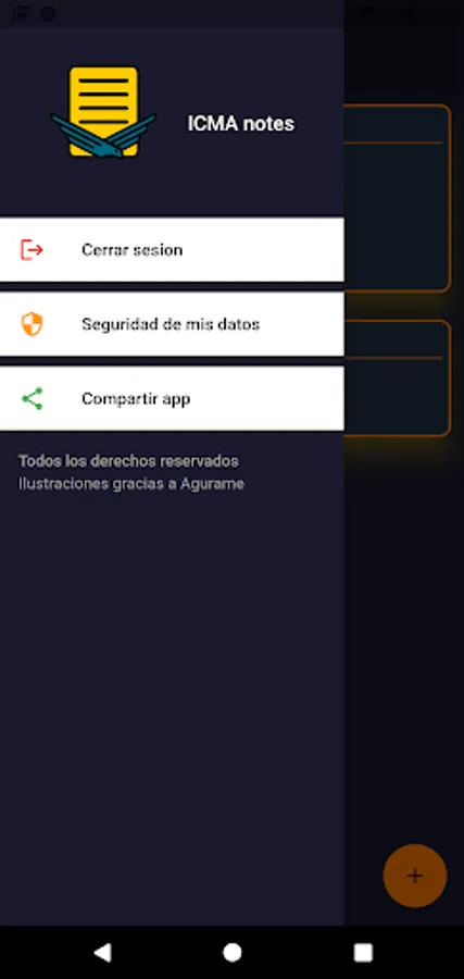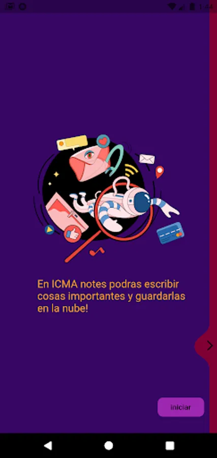 ICMA notes is an app that is used to save notes in the cloud, the app helps you to have your notes related to your email, it is a simple to use and very intuitive app, just click the plus button to add a note and swipe the note to the right to delete or modify it, simple and fast, remember that to see your notes as well as to save them, you need an internet connection