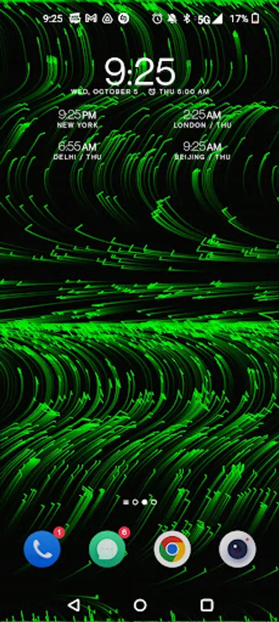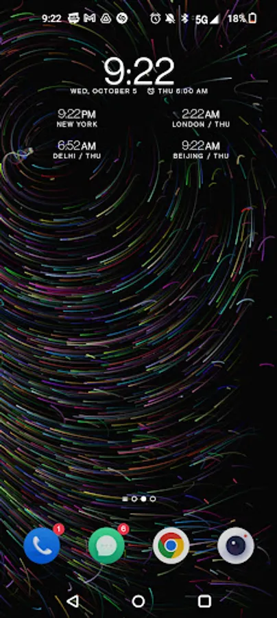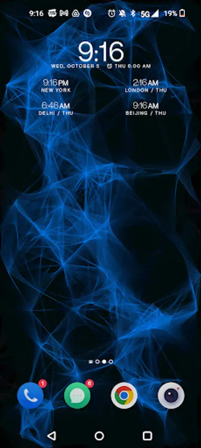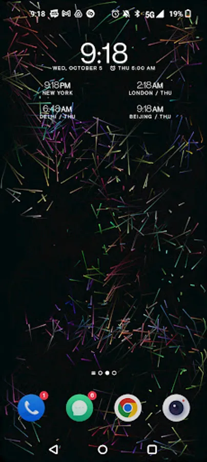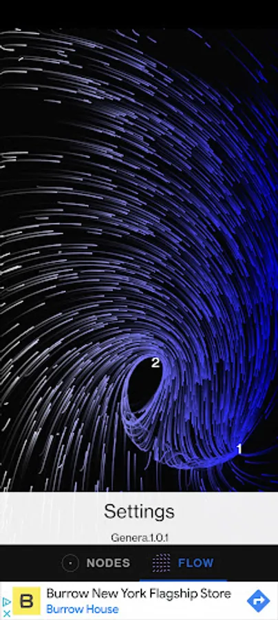 Flows, a system based on a flow field. The space of the wallpaper is divided into a grid, and each section contains a direction for movement. Several object are thrown into this field, drawing lines, streams, and pathways.