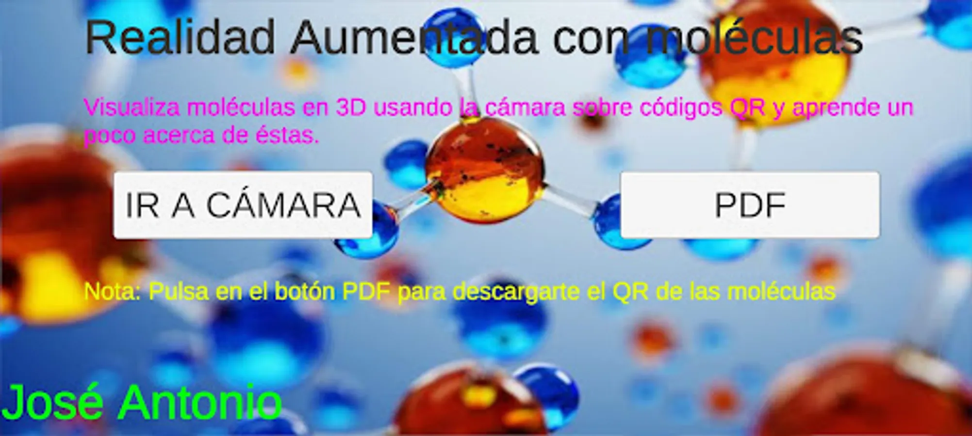 This application is designed for people who want to learn about molecules in a very enjoyable and entertaining way thanks to the correct development of this app.