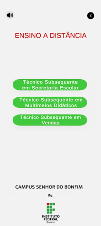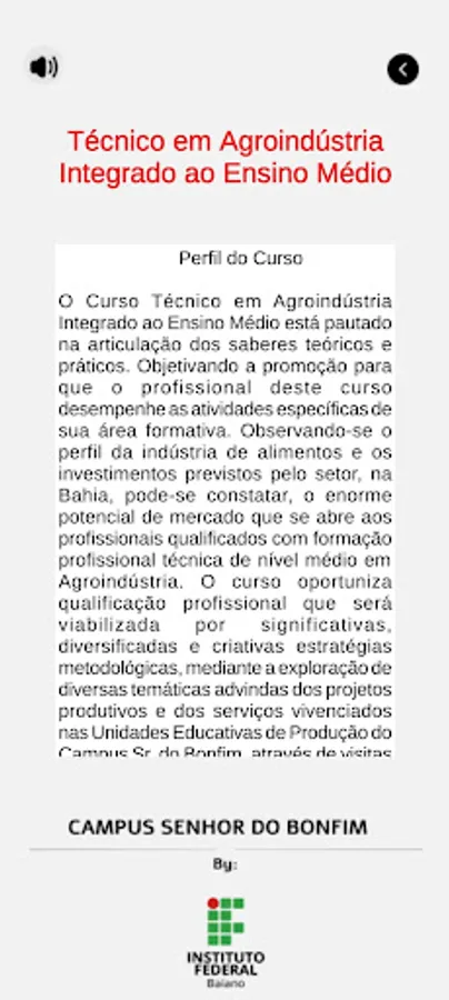 Application produced to publicize the courses offered and their descriptions at the Instituto Federal Baiano campus Senhor do Bonfim. This application was developed by Jaime Tucillo Soares and Marcos André da Silva Santos under the guidance of Professor Jesse Nery.