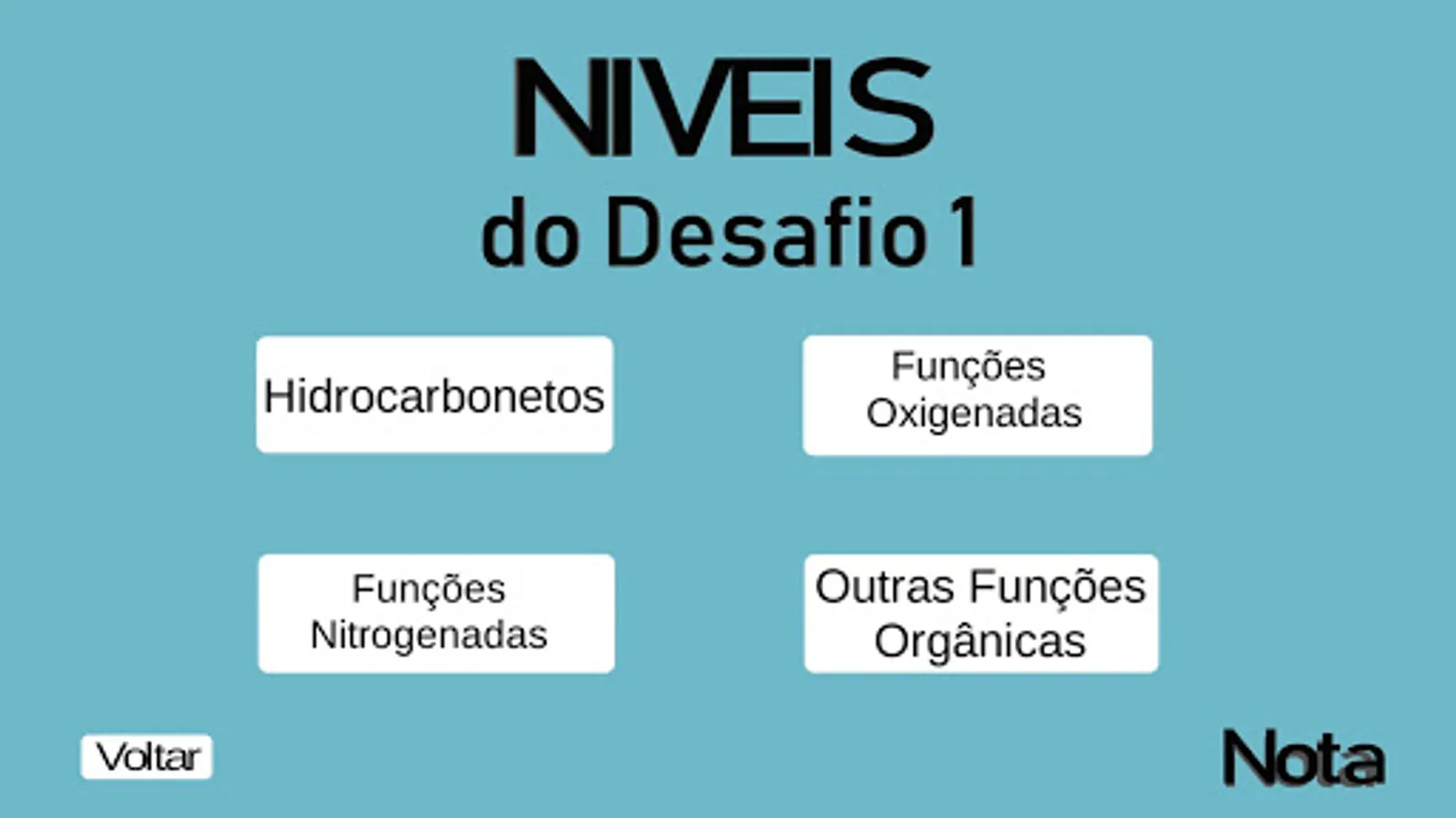 In both challenges, the user must choose one of four categories (they in turn are defined as levels because it follows the order of complexity that are studied):