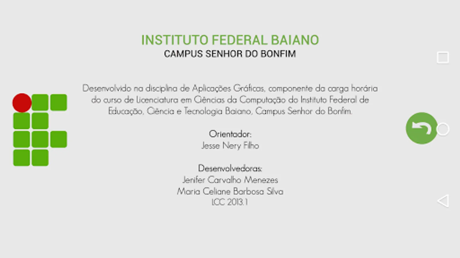 Application which provides the technical course in computing the IFBAIANO Campus Senhor do Bonfim - BA. Developed by Maria Celiane and Jenifer Carvalho under Professor Jesse Nery.