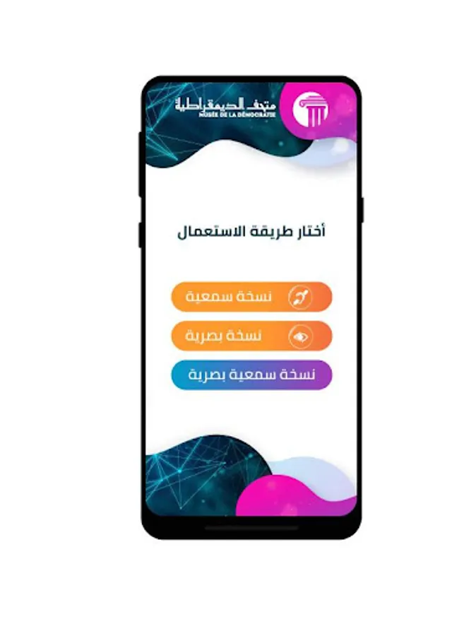 "The Democratic Museum" is a mobile application that introduces civic and electoral information to Tunisian citizens using new technologies such as Virtual Reality and Augmented Reality. The application is accessible to deaf and hard of hearing people as well as visually impaired and blind people. The purpose of the application is to strengthen the participation of citizens in public life and in elections and to raise their awareness of their political and civil rights.