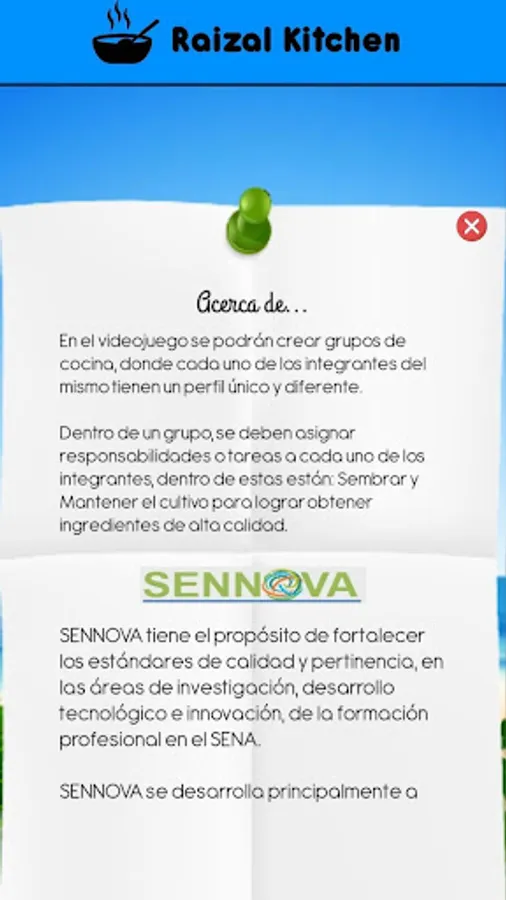 Raizal Kitchen and Recipe, is a practical training game created as an initiative of SENNOVA from the Regional San Andrés of SENA, which allows to know about the preparation of a typical dish of the island cuisine, the Rondón that is nowadays requested in the restaurants of typical food.