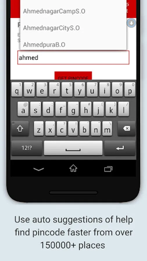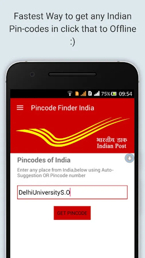 One of the Best Pincode Finder Available in Play Store A must App for every Indian citizen Offline Pin code Finder allows you to search pin codes across India without any data usage. Get any place of India's pin-code in just one touch of a button, Pincode can be searched by place Name. Get your Desired Pincode in just one Touch. Just select the place name from auto-sugesstions and get State/District/Pincode etc Pincode finder app contains more than 1,50,000 Pin-codes from across India Updated