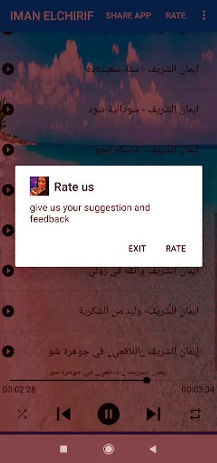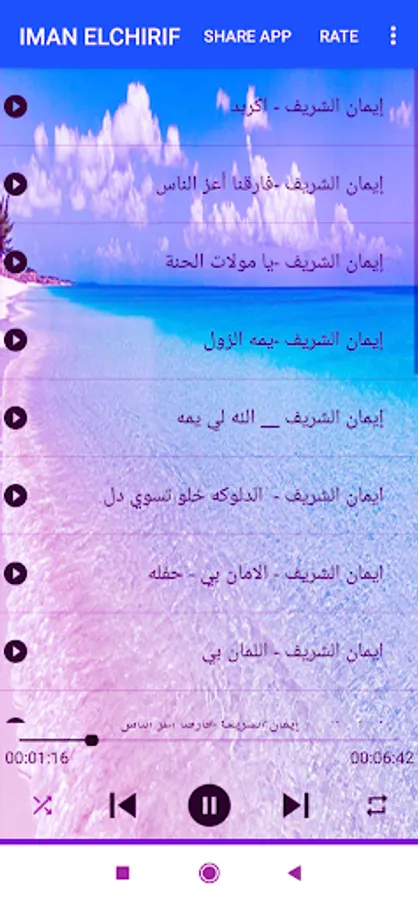 The application of Iman Al-Sharif 2023 songs without the Internet allows you to listen to Iman Al-Sharif songs from abroad, play Iman Al-Sharif songs, leave the application, and leave browsing other applications.