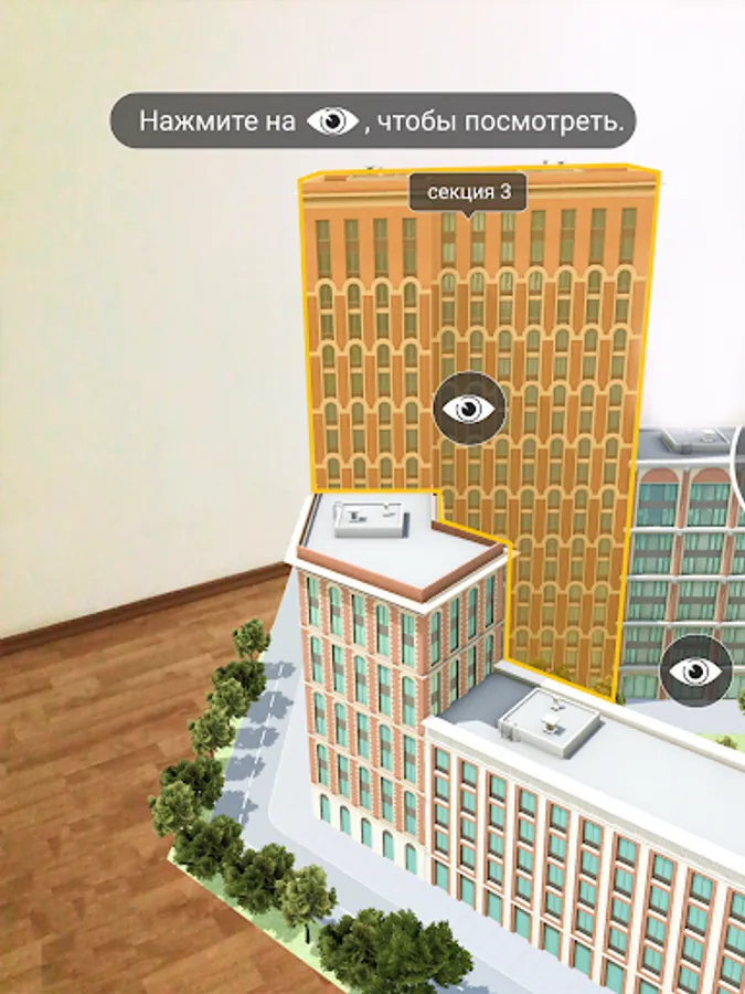 Visualization of the residential complex "Silver Fountain" in augmented reality. Here you can get acquainted with the project: view it from different sides, take a walk around the courtyard and even get acquainted with the layout and interior of the apartments.