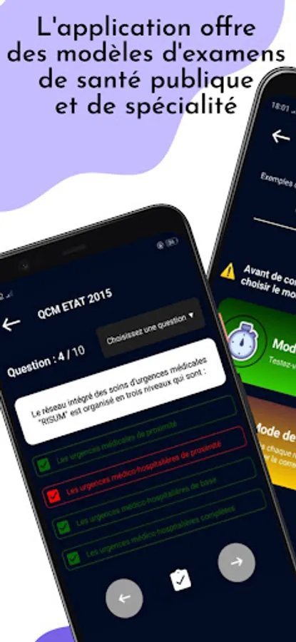 PrepMe (nursing competition) helps you overcome your difficulties. Thus, in the review mode, if you do not know how to answer a question, you just have to press the "question mark" button to immediately benefit from an answer. On the other hand, in the exam mode, you can only rely on yourselves to train under the conditions of the competition.