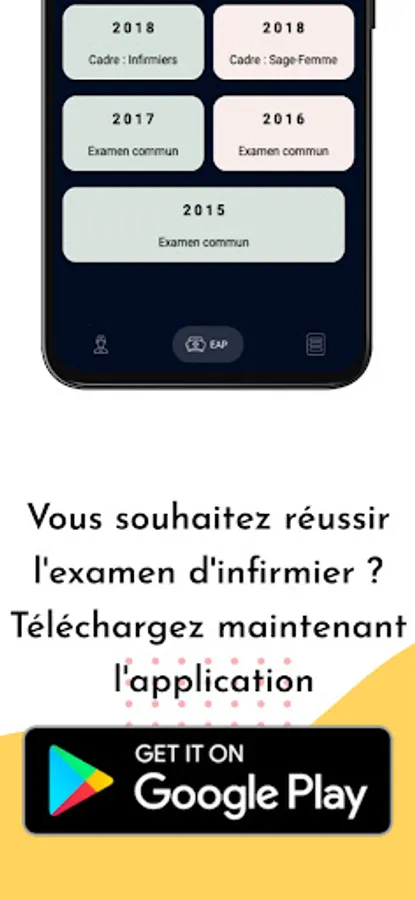 The PrepMe application (nursing competition) offers its users (nurses and health technicians) models of public health and specialty exams. The proposed models relate to State, CHUs and professional aptitude competitions.