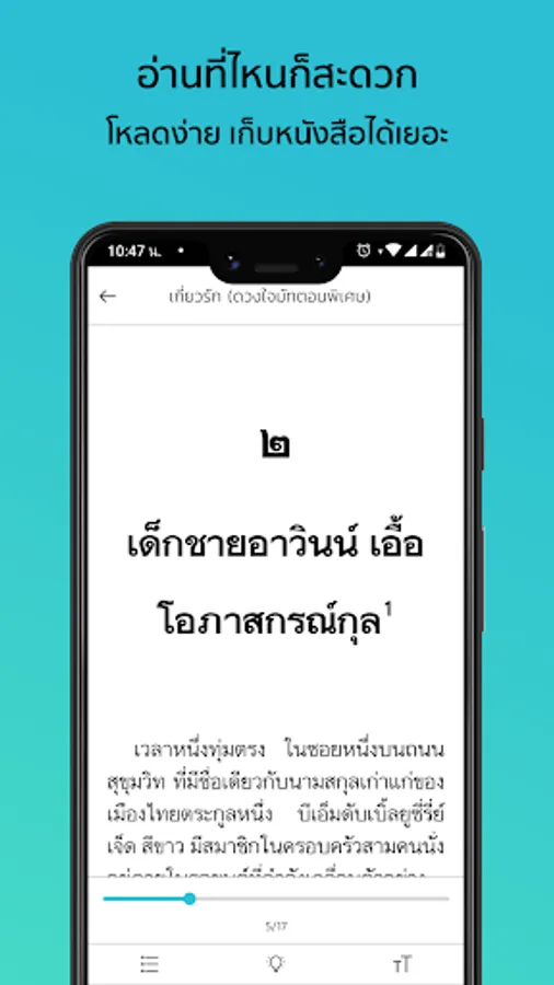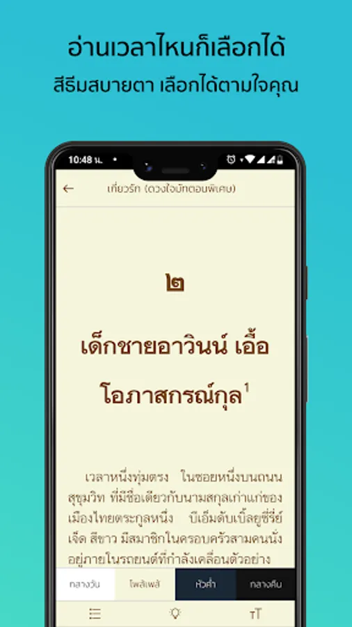 EPUB is a format for the eBook to truly increase the freedom of reading. With the ability to reduce / enlarge font size as you wish With beautiful words Adjust the background color as needed. Small file size makes downloading books no longer need to wait. Try reading the EPUB file and you will be fascinated!