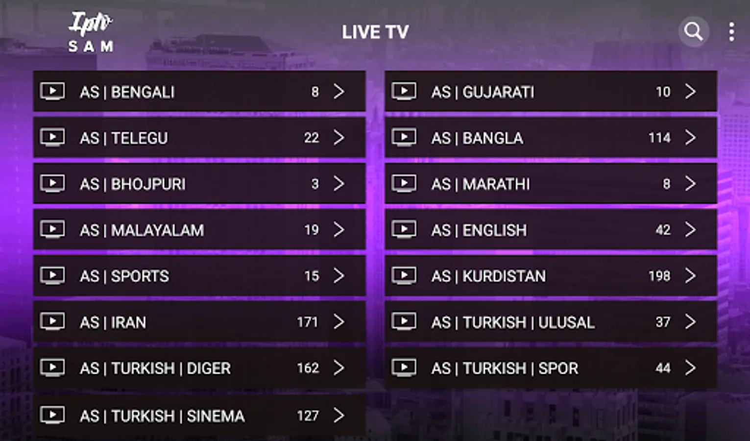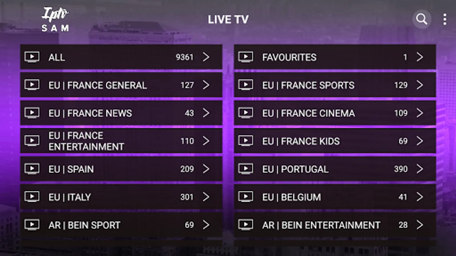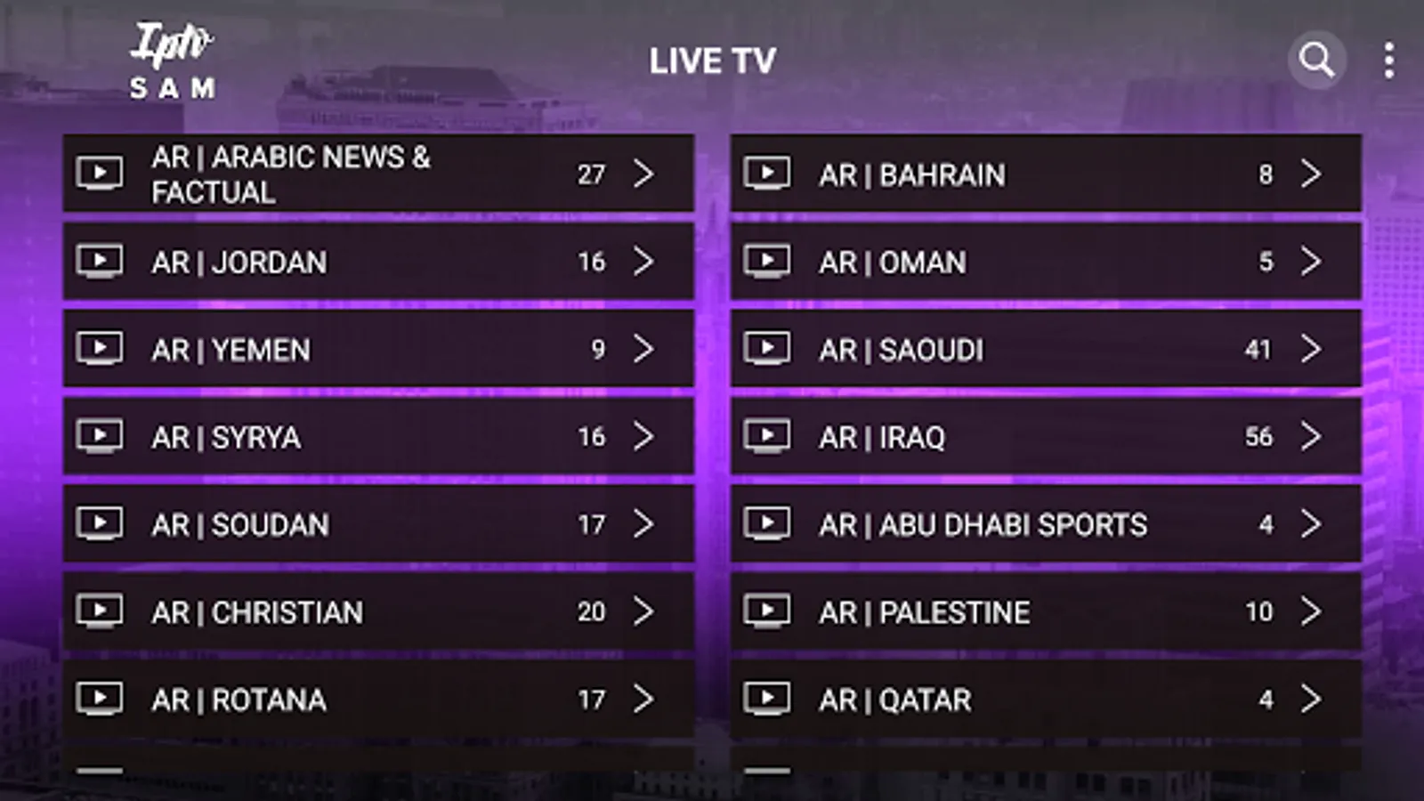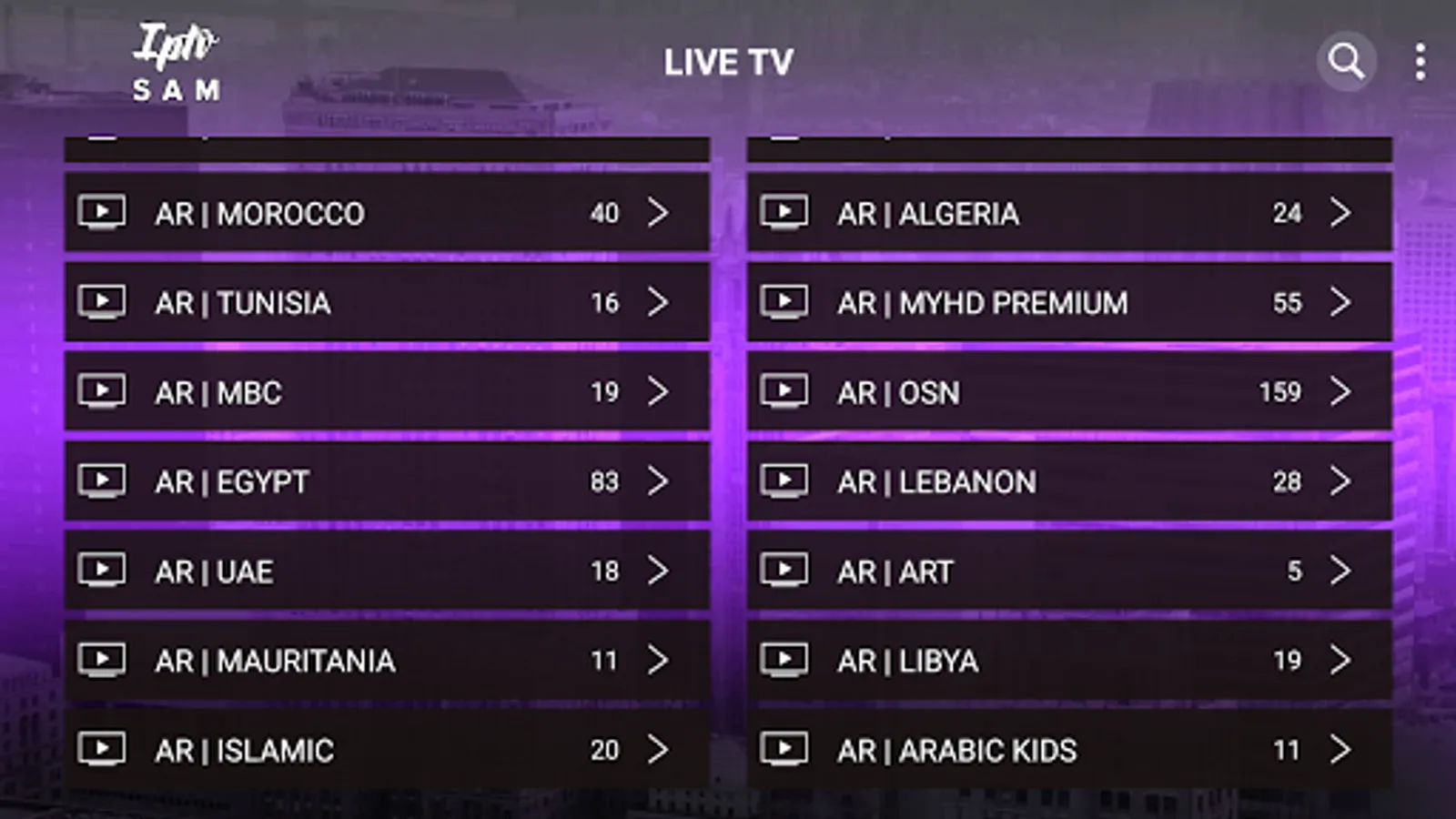the channels list comes in categories sorted for you, such as sports folder or movies or Arabic , English, French, Moroccan, Egyptian, Algerian, Tunisian, Gulf, Islamic, Christians, Kids, Sports, News