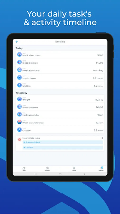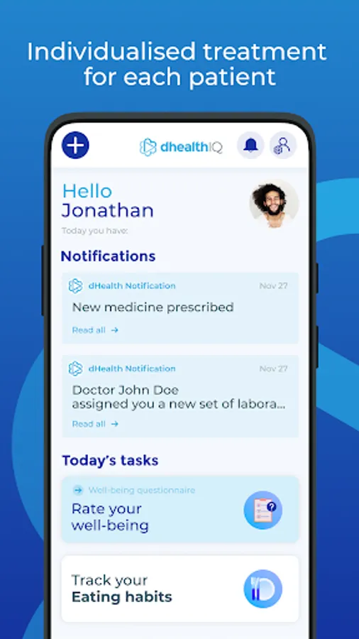 The dHealthIQ app is based on the assumption that all people are best served with a personalized treatment plan. Our mobile application is part of a digital disease management system provided through the primary care system. The application makes use of the unique health metrics and data of each participant, applying artificial intelligence (AI) to analyse health data.