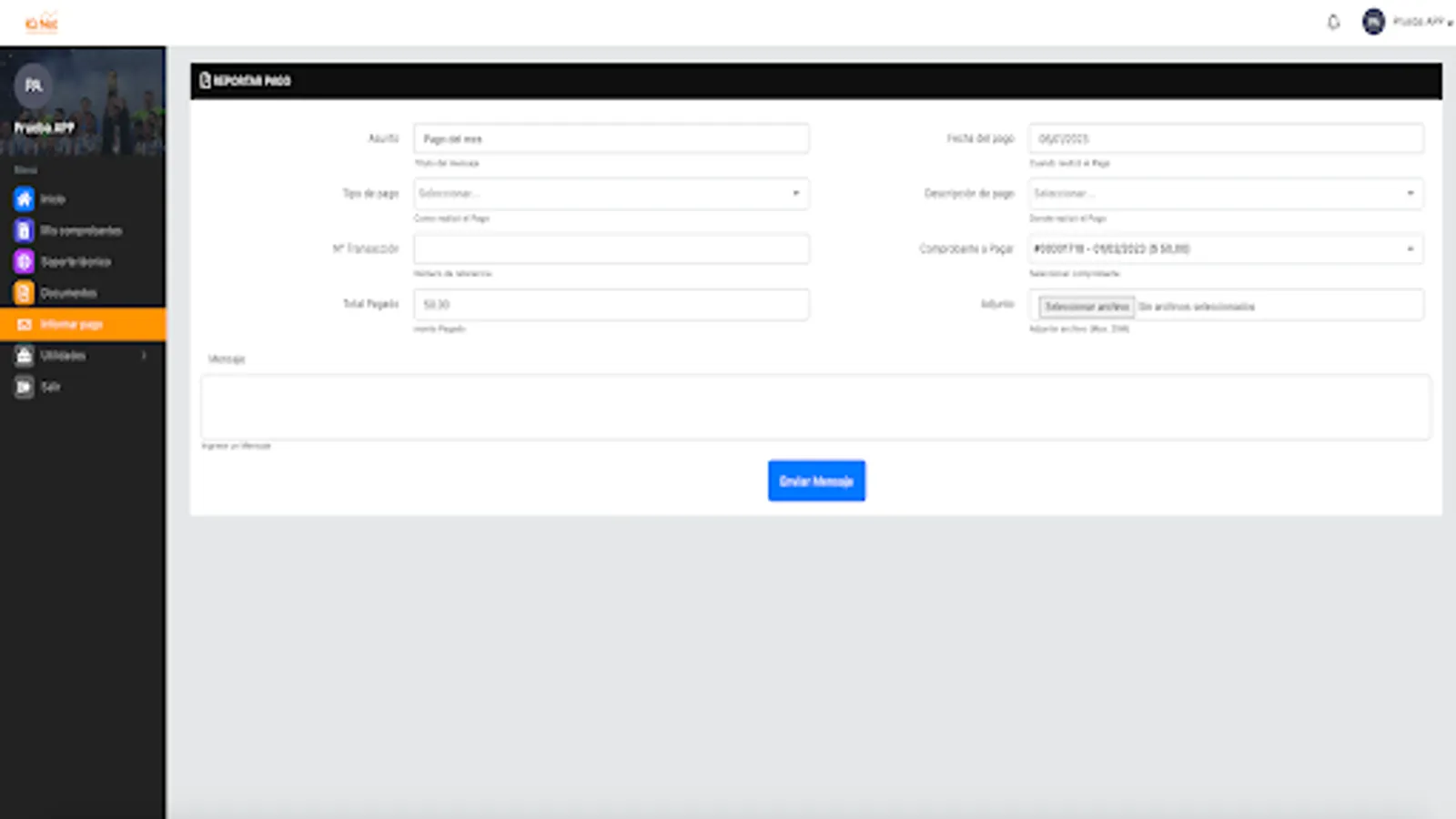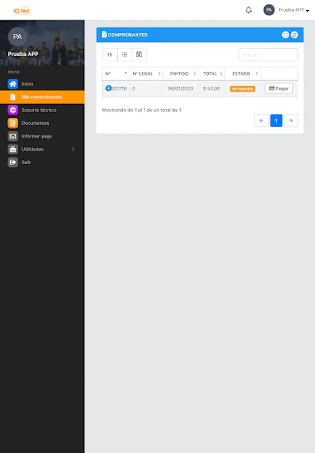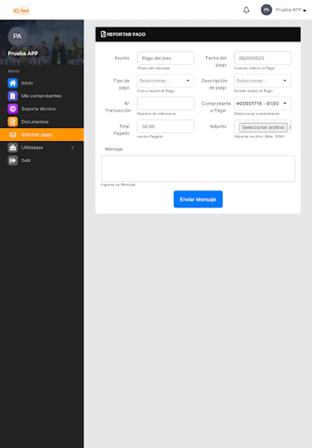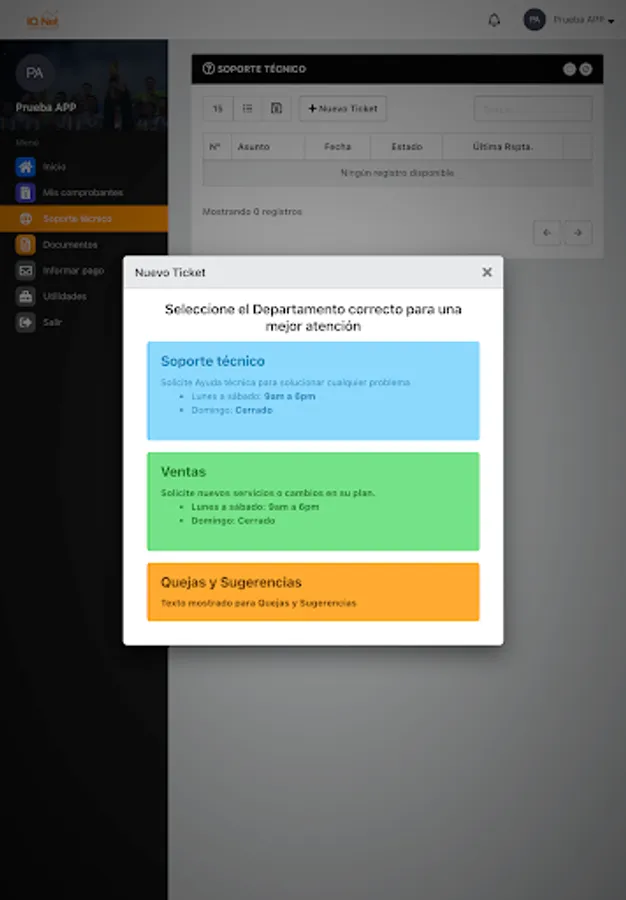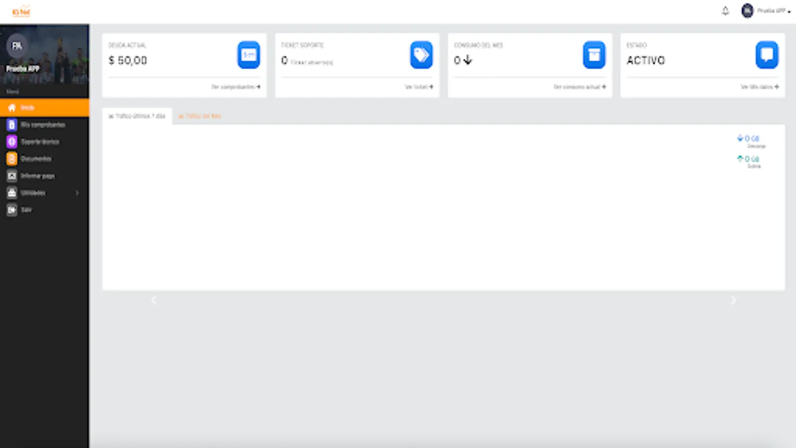 Here you can review your payment receipts, download your invoices, report network problems, see your internet consumption, open a support ticket, among other functions.