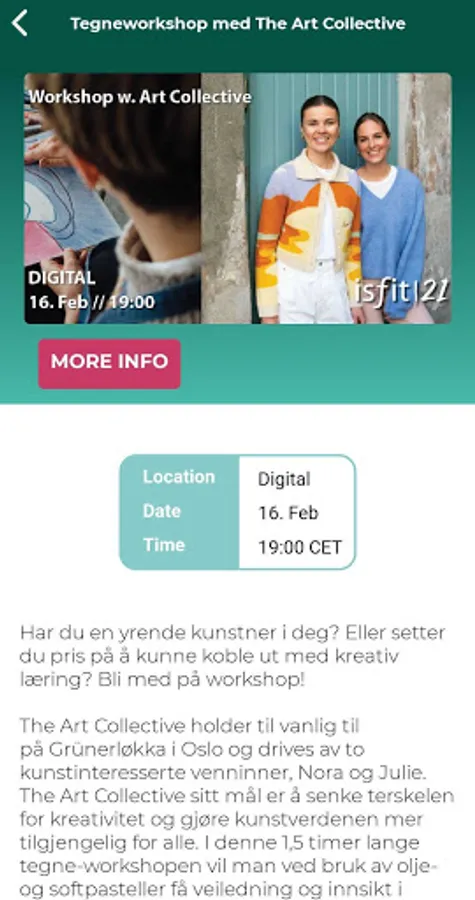 The International Student Festival in Trondheim is having a digital festival this year, so download the app to learn more about ISFiT! Here you can get information about events happening in Trondheim, and much more! All events are online, so pick a date and choose what type of event you want to join.