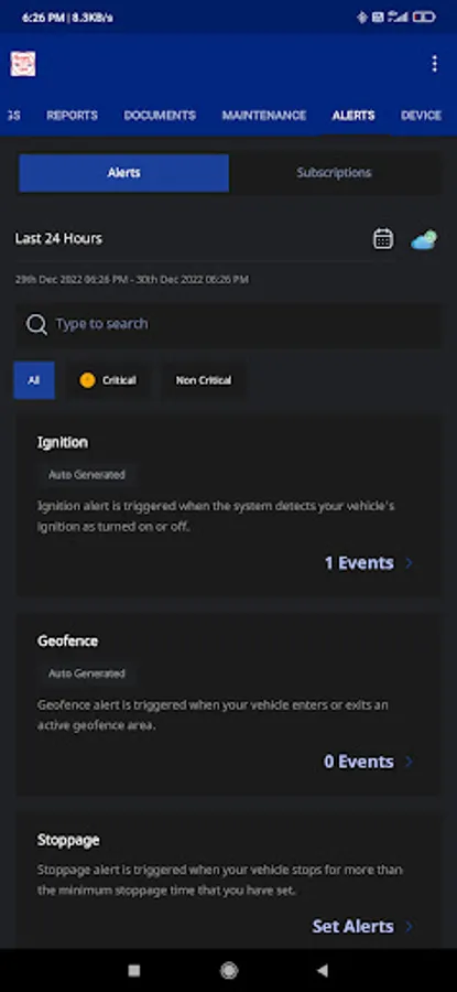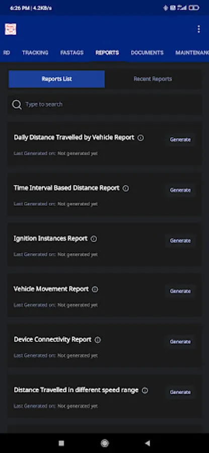 Reports: You can check reports for an interval of time period. Also, it shows you Stoppage time and over speed duration of your vehicle.