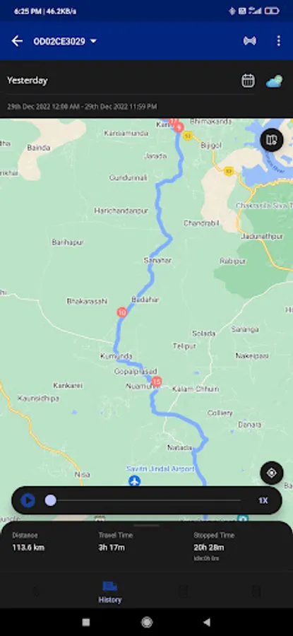 Playback shows you the exact distance travelled, location entry and exit status, vehicle not-reachable, stoppage, over speeding etc for time interval.