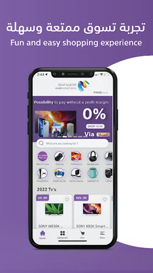 The modern electronic application, which is the official distributor for Sony and PlayStation in Saudi Arabia for more than fifty years, provides you with all the special products in Sony, PlayStation and others at the best prices and services, and also provides new special games and exclusive versions as well. The modern electronic application offers you a distinctive shopping experience and amazing features that help raise the level of customer satisfaction in particular. Features of the application: - Safe shopping and various payment methods - Various options and products exceeding 1000 products - The possibility of direct and fast delivery or receipt from one of the exhibitions affiliated with Sony World - Ease of Mestores, the official distributor for Sony and PlayStation in Saudi Arabia for more than fifty years, provides you with all the special products in Sony, PlayStation and others at the best prices and services, and also provides new special games and exclusive versions as well. Modern electronic application offers you a unique shopping experience and amazing features that help raise the level of customer satisfaction in particularApplication features:- Safe shopping and various payment methods- Diversified options and more than 1,000 products- The possibility of direct and fast delivery or receipt from One of the exhibitions affiliated with Sony World- Easy to navigate and an unforgettable customer experience