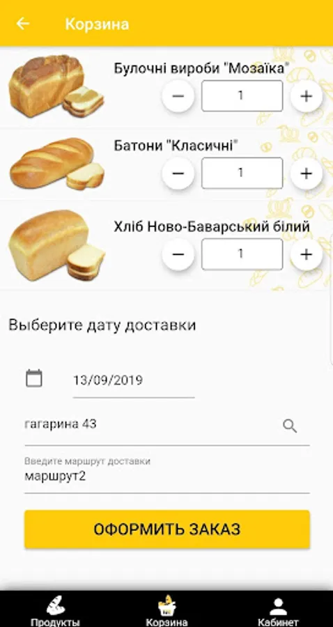 The system for processing applications for the delivery of bakery products of the "New Bavarian Bakery"