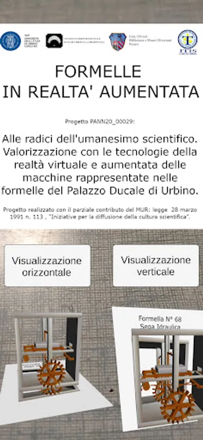 Augmented reality app that represents the virtual reconstruction of the machines represented in the tiles of the Ducal Palace of Urbino.