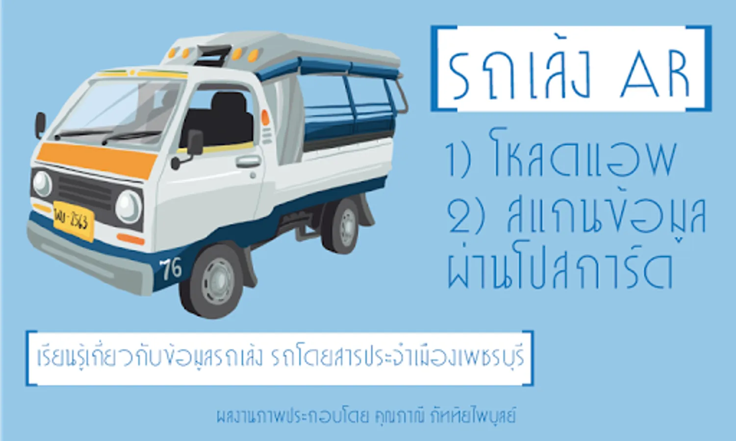 Learn this information from the Leng Phetchaburi car postcard using the innovative Augmented Reality (AR) technology. Just load the application "Leng AR" installed on your smartphone. Then use an application to scan through the postcard.
