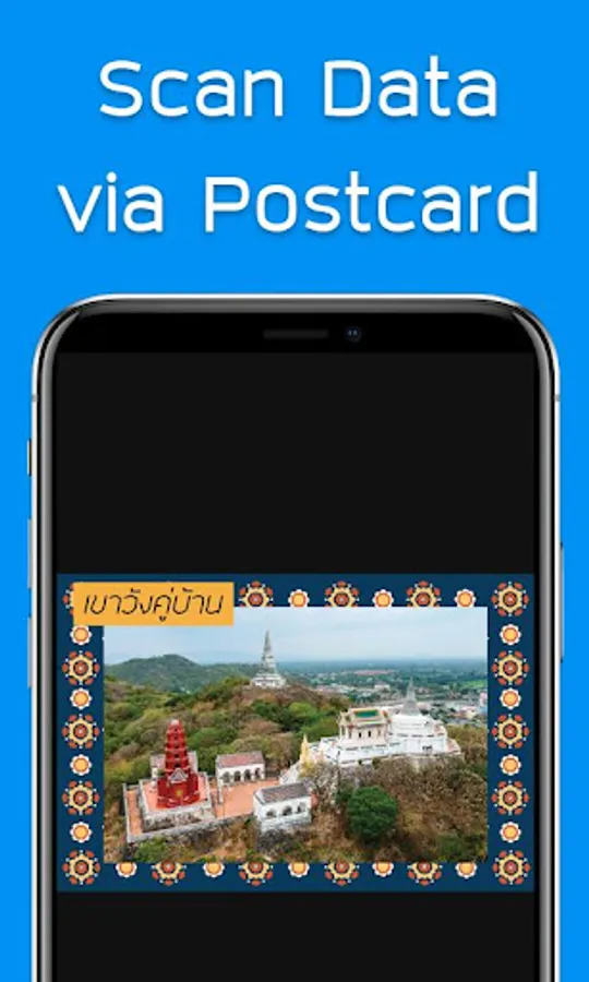 Learn about food and travel in Phetchaburi from Phetchaburi Province slogan postcard "Khaowang Koo Baan Kanom Whan Mueang Phra Lerdlum Silpa Dan Dhramma Talay Ngam" using Augmented Reality (AR) technology just download the Pipeli AR app, setup the app on your smartpone and then scan data via the poscard
