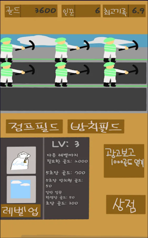 Raise your score and gold in Jump Field and try the score ranking and gold ranking! You can also earn gold automatically by adding workers with gold.