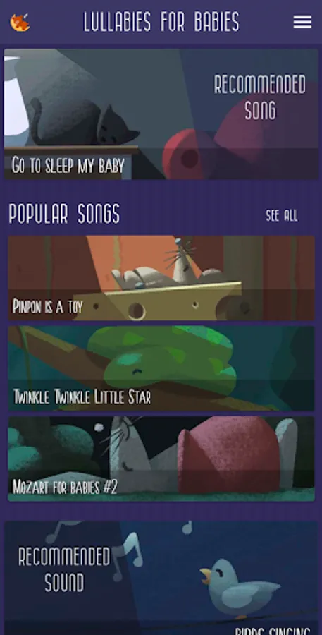 The best selection of lullabies and relaxing sounds for your baby including popular themes and classic songs that will only relax your baby and make him fall asleep much faster. In addition to making them relax when they feel any discomfort. All this with ease and in the comfort of your Android device!
