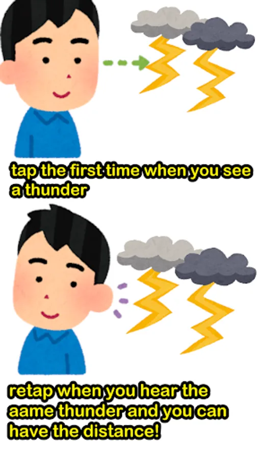 To take a distance tap when you see a thunder and retap when you hear the same thunder.