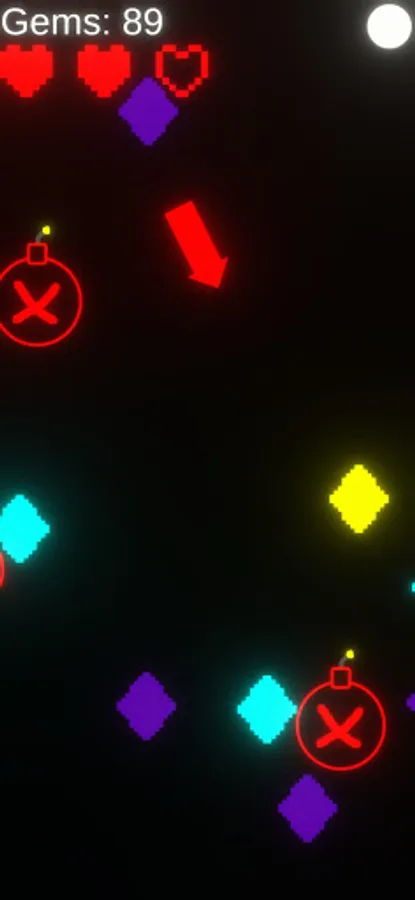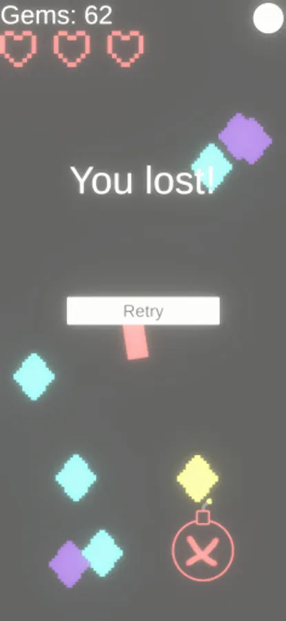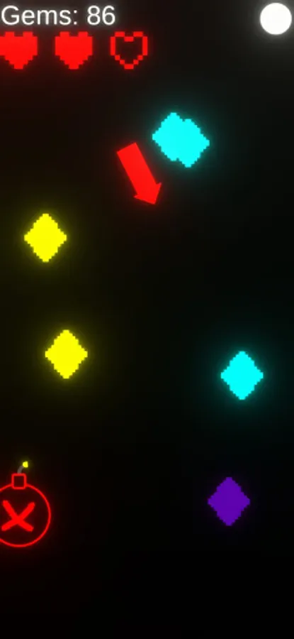 swipe on the screen to move, hold the finger on the screen before releasing it for some time to move faster. the blue gem is worth one gem, the yellow one 3, and the violet one will make you lose 10 gems.