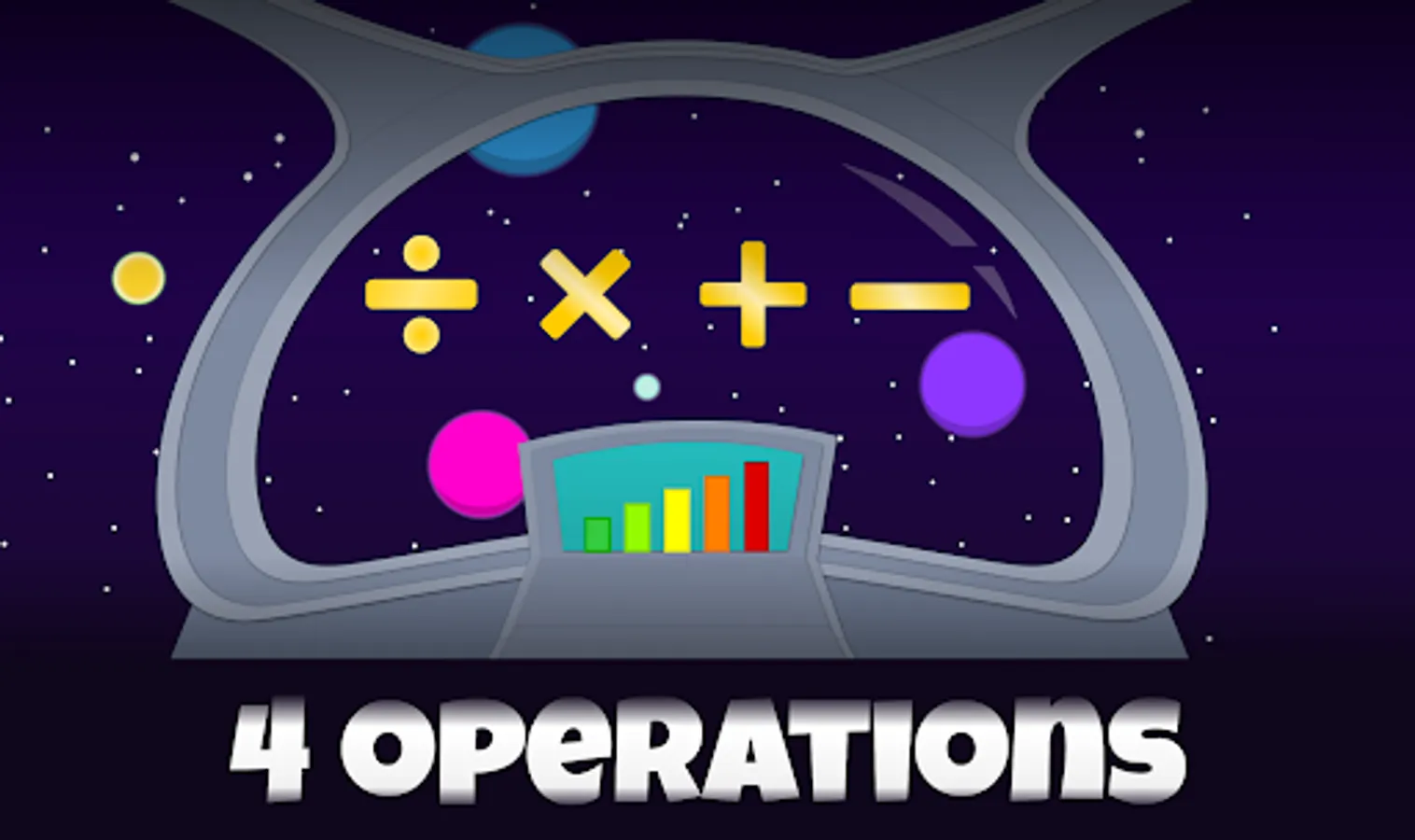Compete against the robot to win the space race by learning to add, subtract, multiply and divide.