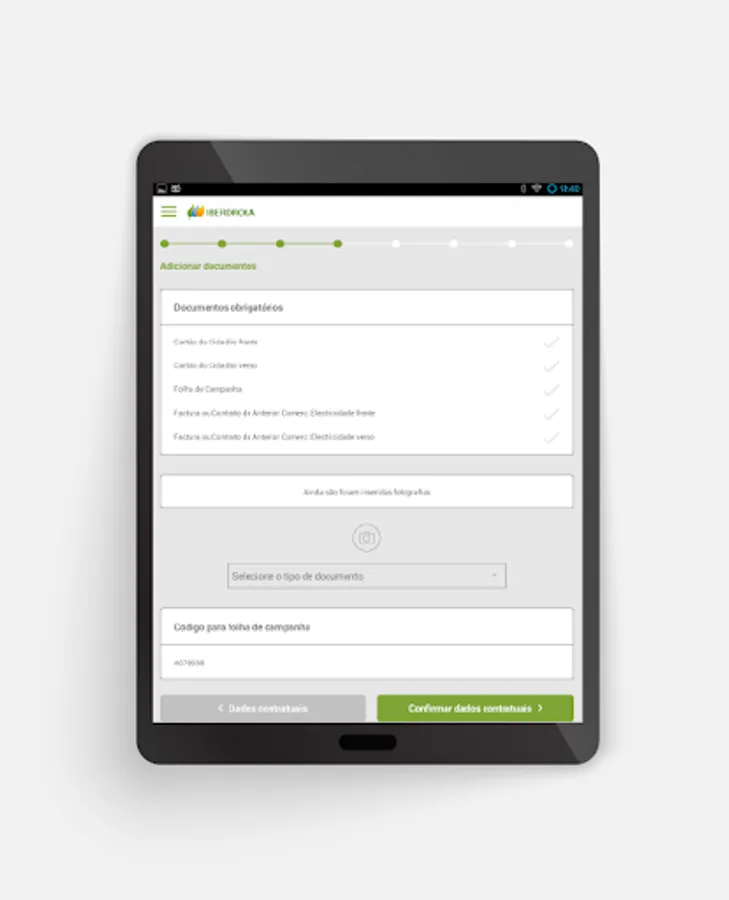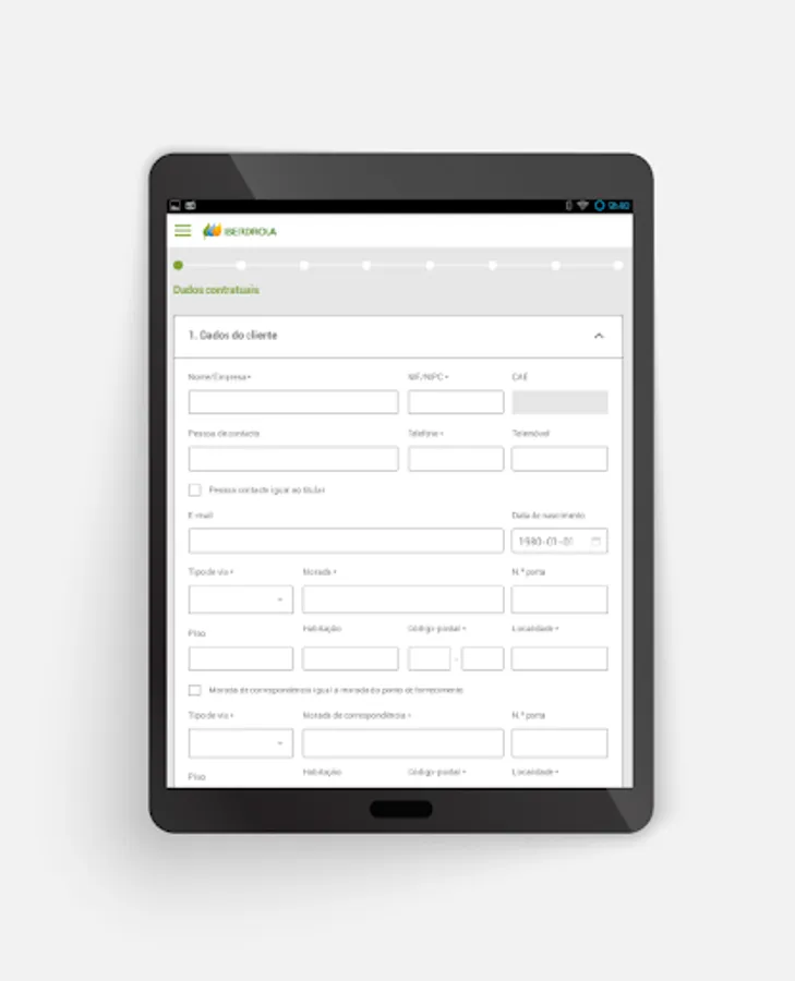 Aplicação para tablet direcionada a comerciais Iberdrola que permite a gestão facilitada de todos os contratos (eletricidade e gás) e campanhas.