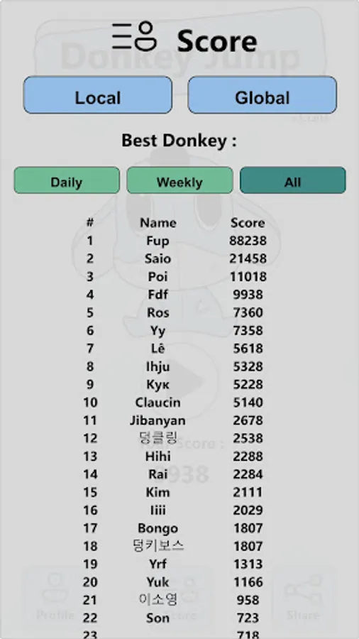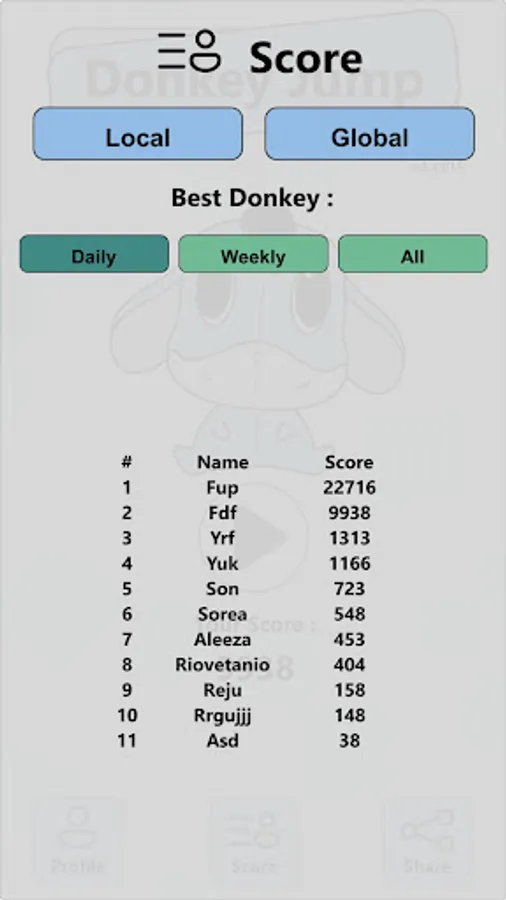 Like a doodle, you go higher and get more points, with the difference that you have a beautiful donkey