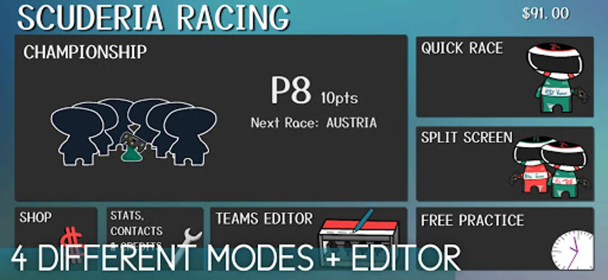 20 different racing teams, 40 drivers and 8 race tracks to race in!