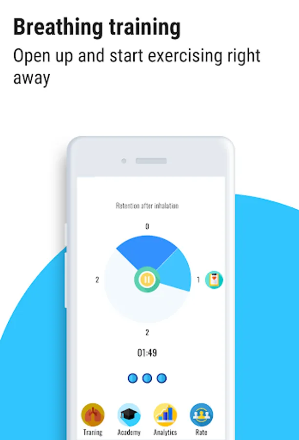 I decided to train my breath and wanted to find a suitable application. But I couldn't. There is either just a cyclic stopwatch, or quite some ugliness. And okay, I know what to do. But how will a normal inhabitant understand how and why he needs it?