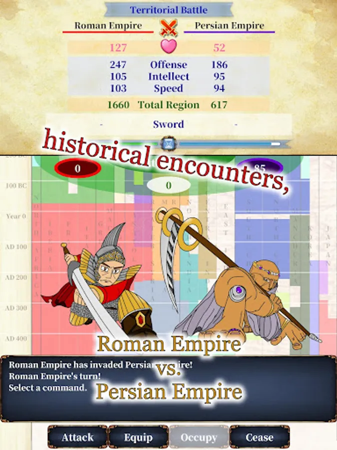 You can choose from “Roman Empire”, “Persian Empire”, “Athens”, “Maurya Empire”, “Han Dynasty”, “Goguryeo” and “Yamatai” to play.