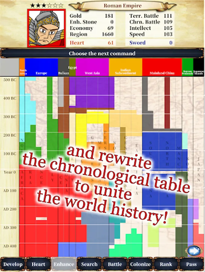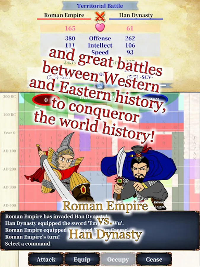 “History Conqueror” is a historical strategy/simulation game where you rewrite the chronological table of history to conqueror the world history.