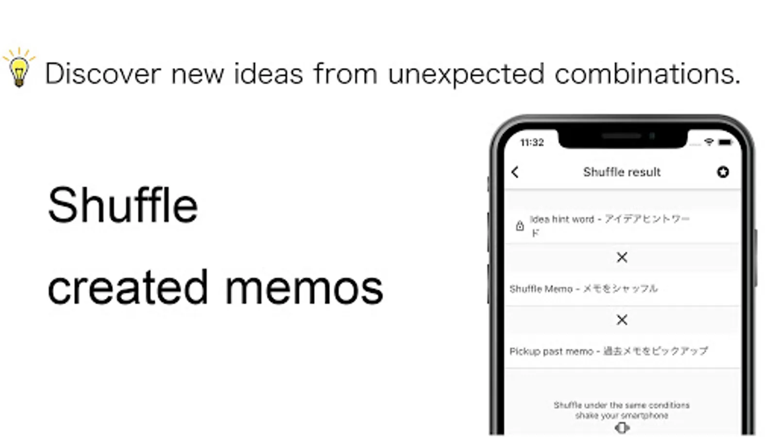 IdeaMemo iX displays two or three randomly selected memos from the created memos. You can discover new ideas from unexpected combinations.