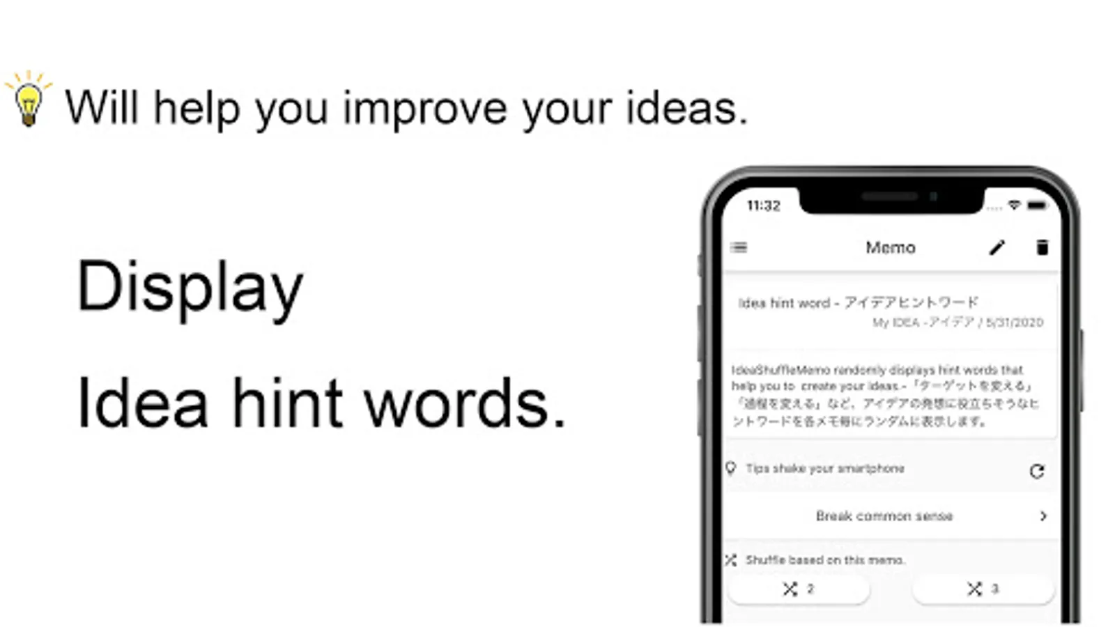 IdeaMemo iX randomly displays hint words that help you to create your ideas.