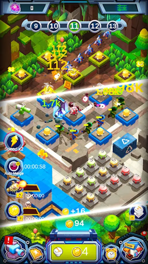 You will get coins by destroying enemy waves, use these coins to merge your towers to defeat higher level enemies. And as an idle games, don’t forget to come back to collect coins when you are available.